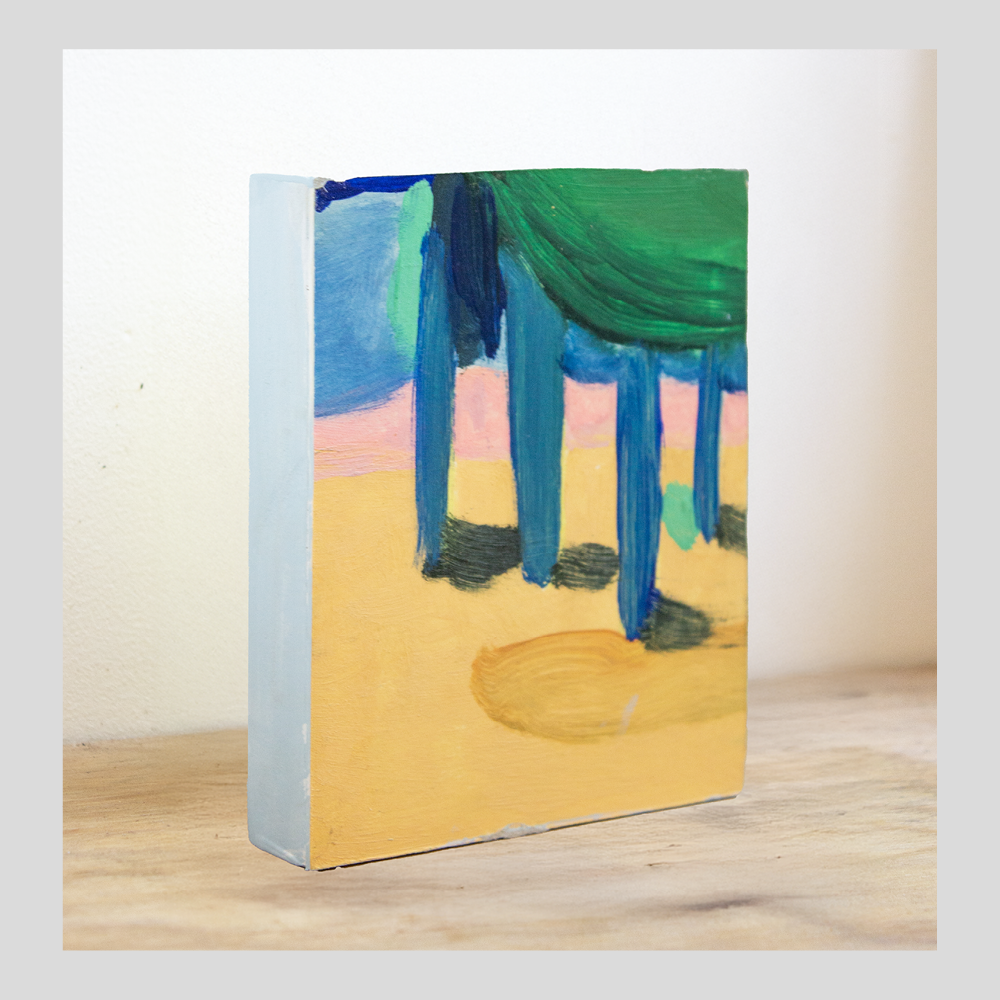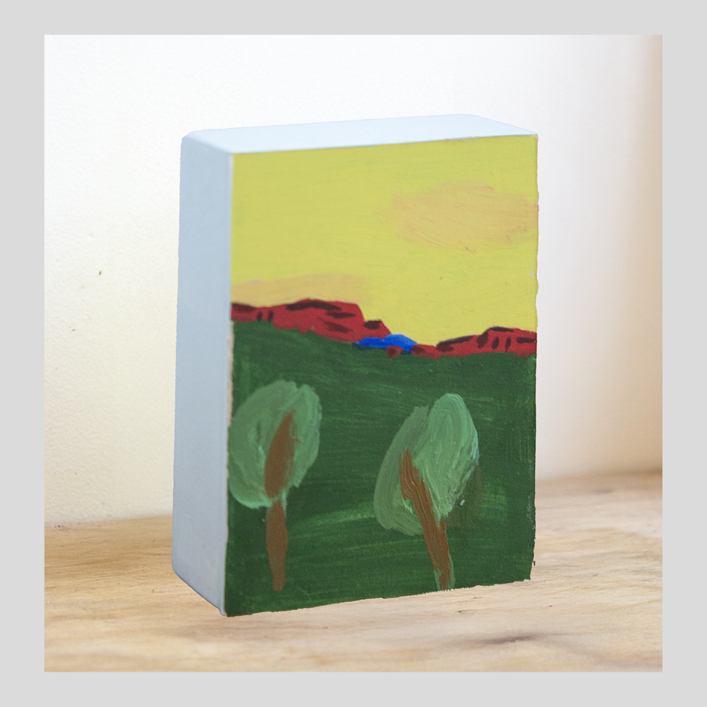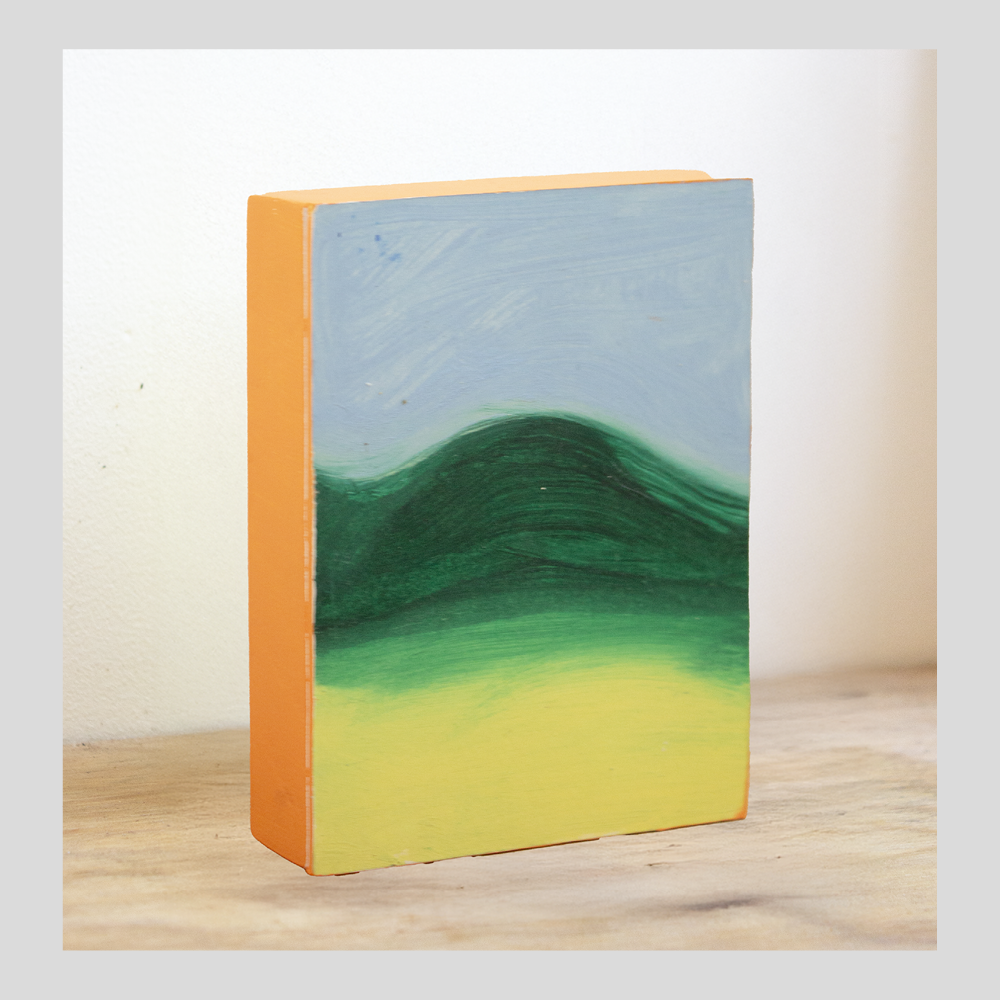 Evan retranscrit des souvenirs, qu’ils soient vécus ou racontés. Il parcourt une région reculée de la Californie, terre d’origine de sa famille, où se mêlent vestiges américains et séquoias rouges. À travers ses huile sur bois peint, il capte et réinterprète les couleurs, oscillant entre abstraction et figuration, pour donner une nouvelle dimension à ces paysages empreints de mémoire.